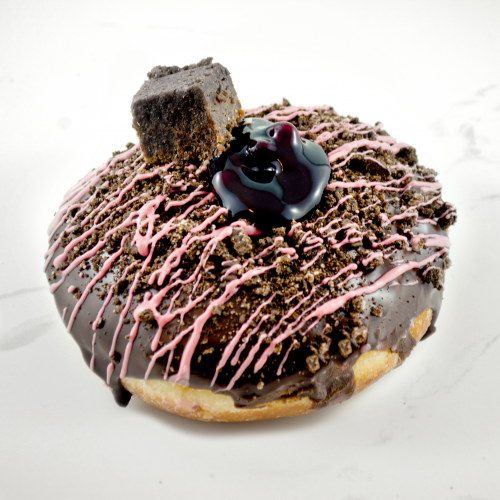 *NEW* Black Forest Cherry compote bullseye, covered in chocolate ganache. Crushed Oreo cookies, Ruby chocolate & Brownie -