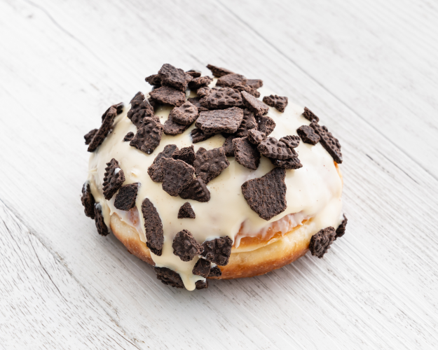 Cookies & Cream VANILLA PASTRY CREAM FILLED, Coated in WHITE CHOCOLATE & OREO COOKIE CRUMBS