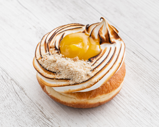 Lemon Meringue TANGY LEMON CURD CENTRE, FLUFFY TORCHED SWISS MERINGUE & Biscuit crumbs